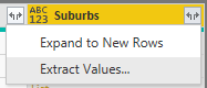 I then clicked on Expand on the Suburbs column and selected “Extract Values”