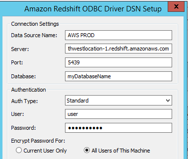 This then opened the Amazon Redshift ODBC Driver DNS Setup